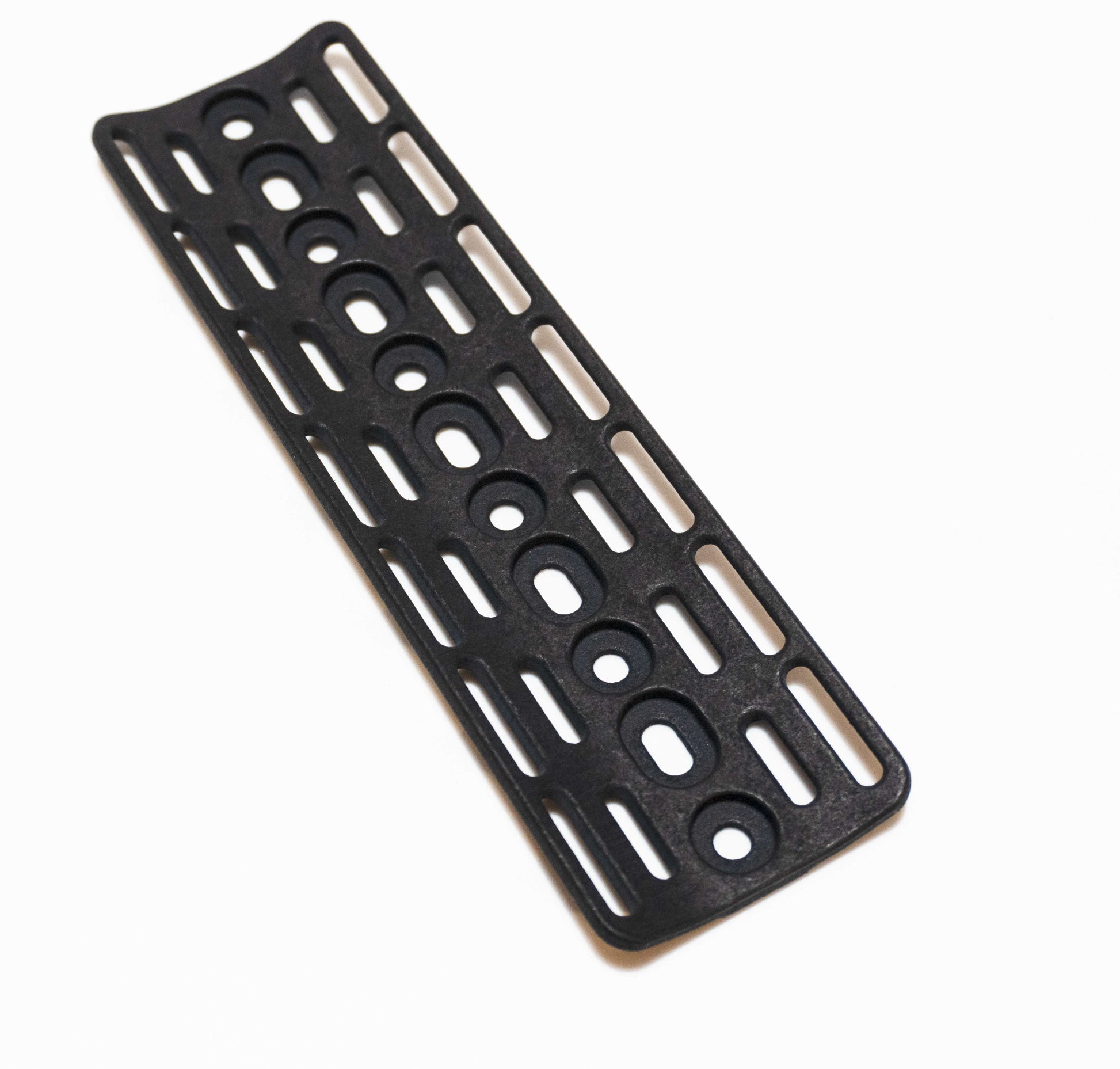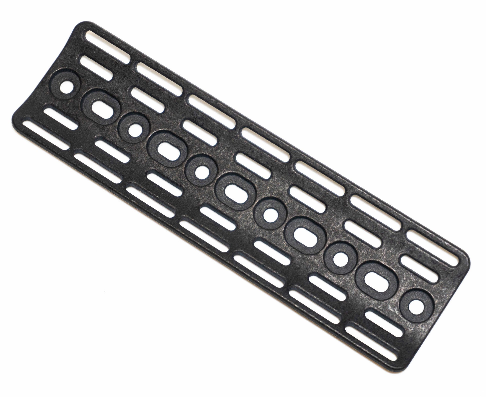 This particular version, the 'Double Trouble Triple', has bolt locations for triple bosses found on many newer frames as well as on some forks but will also happily work with double (bottle type) bosses too. The 28(!) cut-outs on the Strapdeck also allow you to get clever and strap the deck to anywhere that doesn't have bosses. The 11 bolt location holes means that it really is truly versatile and will fit almost any location as well as sitting centrally if using with the GFunk bar clamps. Use a pair of Voile straps to secure your load. We'd recommend a 20" or 25" strap and some Strap Keepers to keep everything nice and tidy.