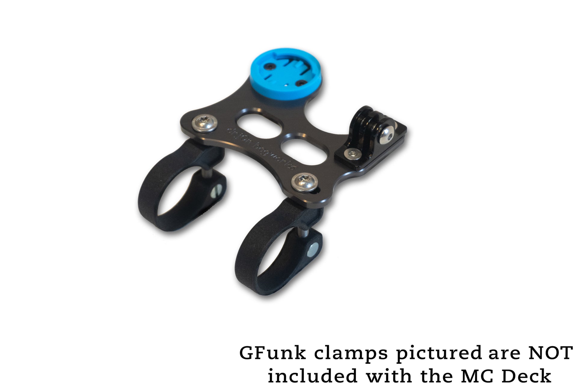 Note that the MC Deck requires a GFunk clamp set to attach to the bars. It does not come with its own mounting clamps. The MC Deck does come with longer bolts that allow you use a Strapdeck and MC Deck at the same time using the same GFunk clamps.